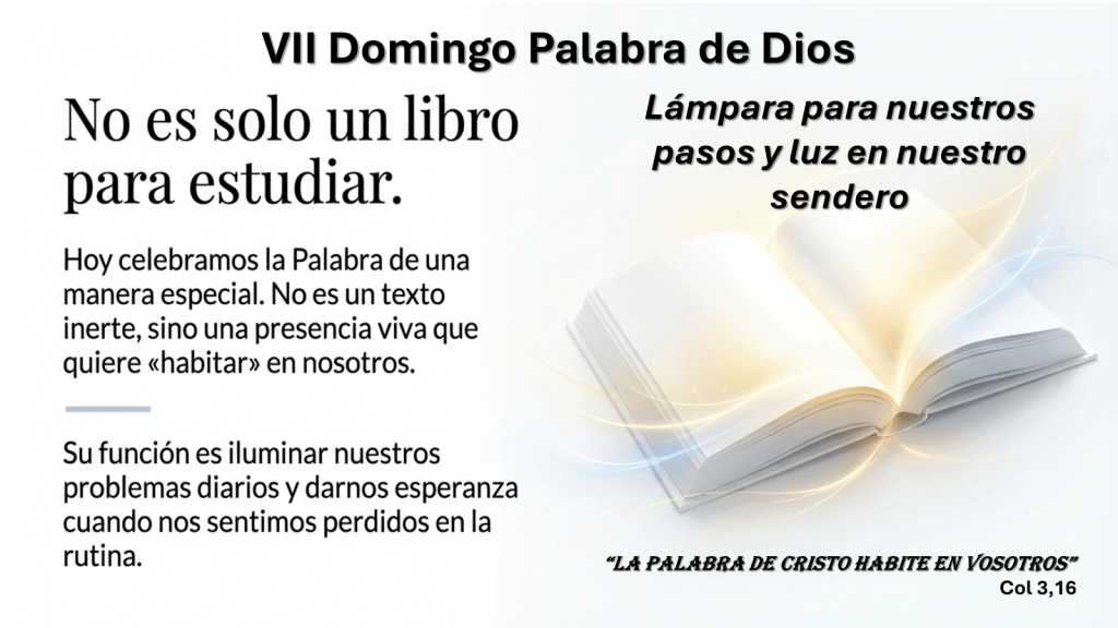 Que la Palabra se hace carne que nos da como alimento nos haga decir con el salmista: “Aquí estoy, Señor, para hacer tu voluntad”. Que el Espíritu Santo, que movió a Pablo y a los primeros discípulos, encienda nuestro amor por la Escritura y nos conceda un corazón grande reconociéndonos siempre como miembros de un solo cuerpo, la Iglesia. Que la Palabra de Dios sea hoy y siempre el faro que ilumine nuestras decisiones y el motor que nos impulse a anunciar con valentía la buena noticia de la salvación.