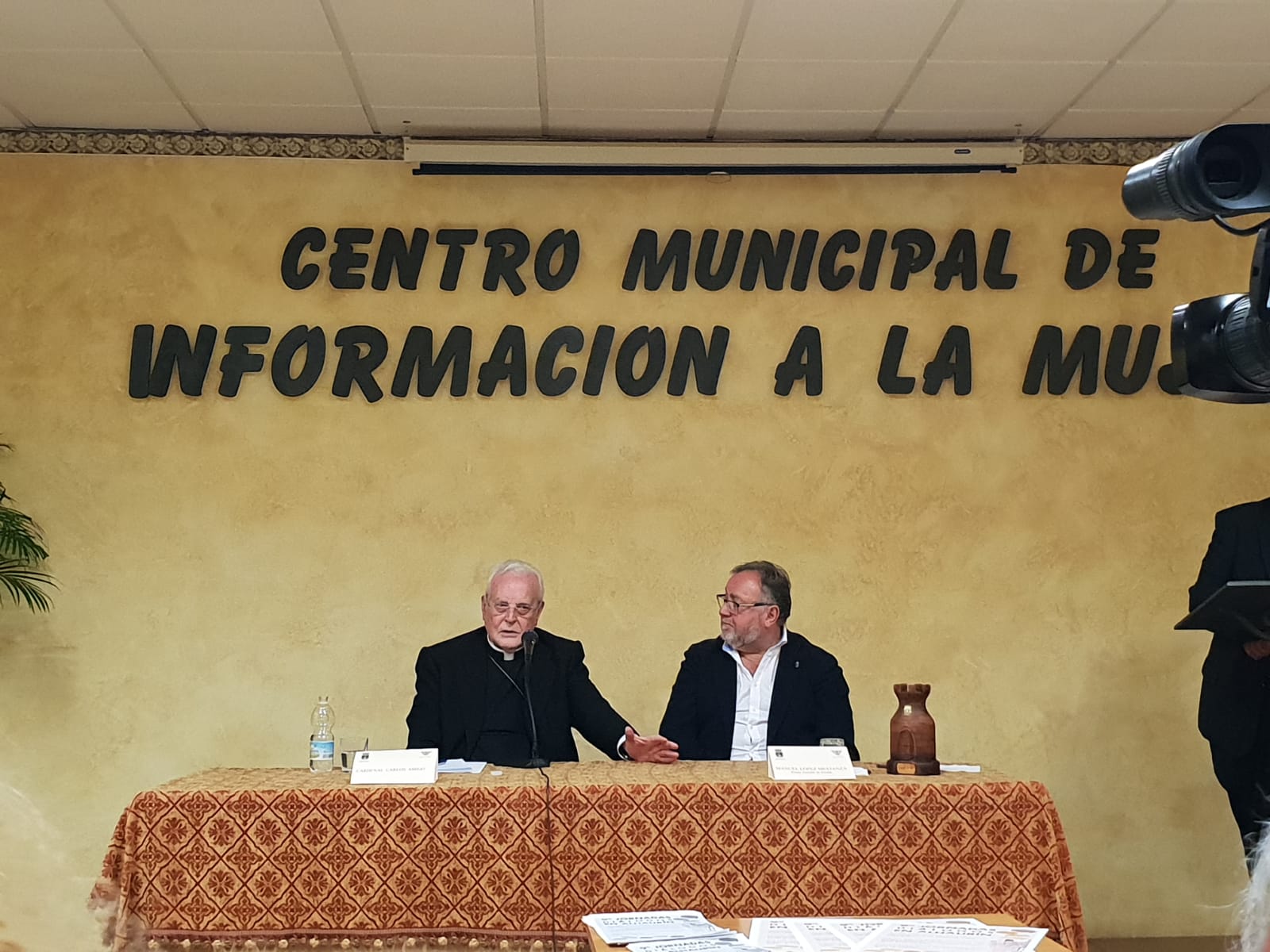 Monseñor Don Carlos Amigo Vallejo, Cardenal franciscano y Arzobispo emérito de Sevilla, ofreció una charla en el Centro de la Mujer del Ayuntamiento de Alhaurín de la Torre, invitado por Don Joaquín Villanova alcalde de la localidad.