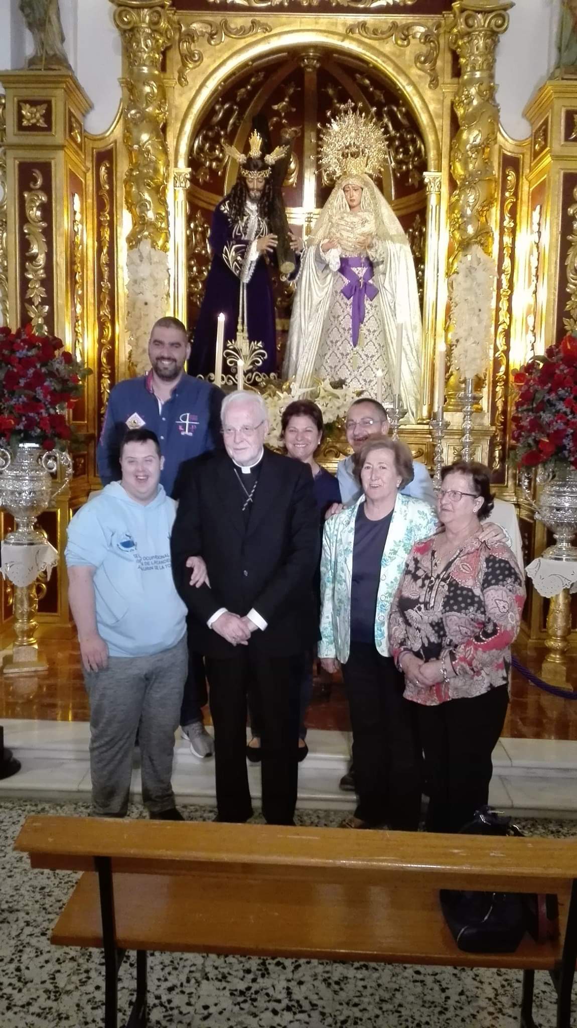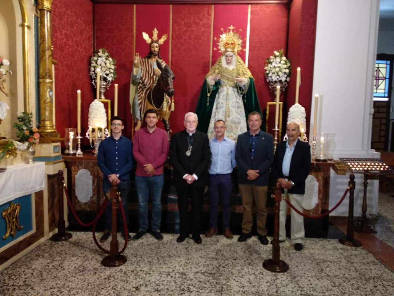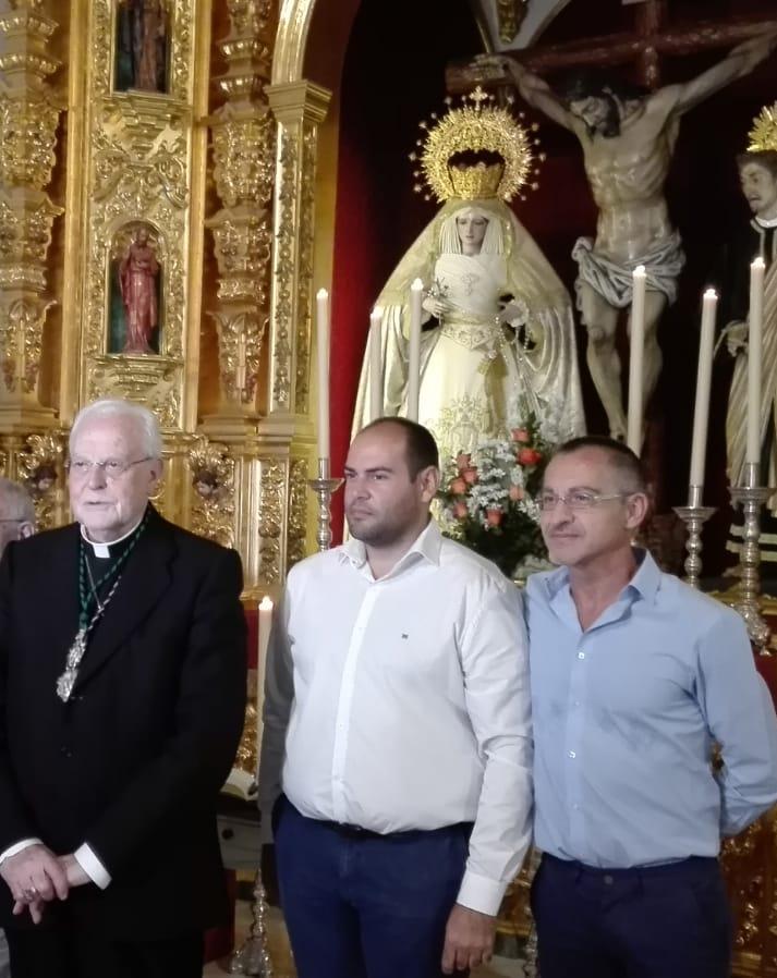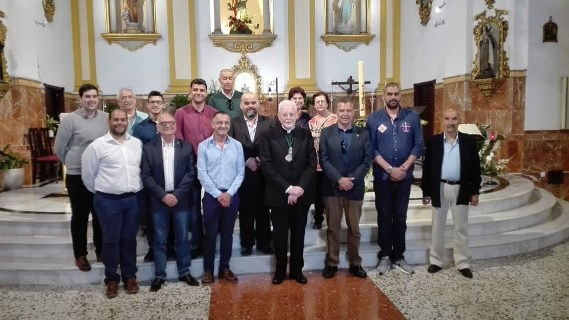 Por la mañana visitó nuestra Parroquia junto a los tres hermanos mayores de las tres cofradías locales, Pepe Moreno de la Pollinica, Jose Antonio Bernal de los Moraos y Jose María Maldonado de los Verdes, nuestro párroco Reinaldo Aguilera y el diácono Enrique Mateo.