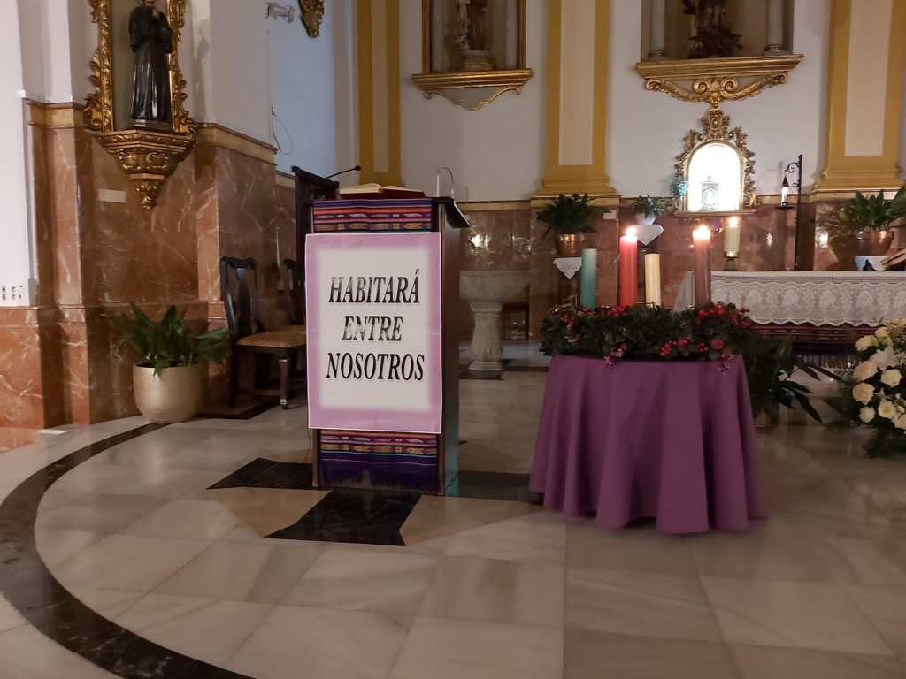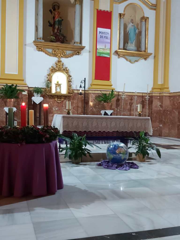 Segundo domingo de Adviento está dominado por la figura de Juan el Bautista. El mensaje de la segunda banderola es “Poneros en pie”, permaneced despiertos, levantad la cabeza se acerca la liberación. Preparemos los caminos y las sendas al Señor, Dios cuenta con nuestra acción. Seguimos tejiendo nuestra red “Tejiendo redes para una casa común» colocando ahora junto a la bola del mundo la bobina y la aguja para tejer la red.