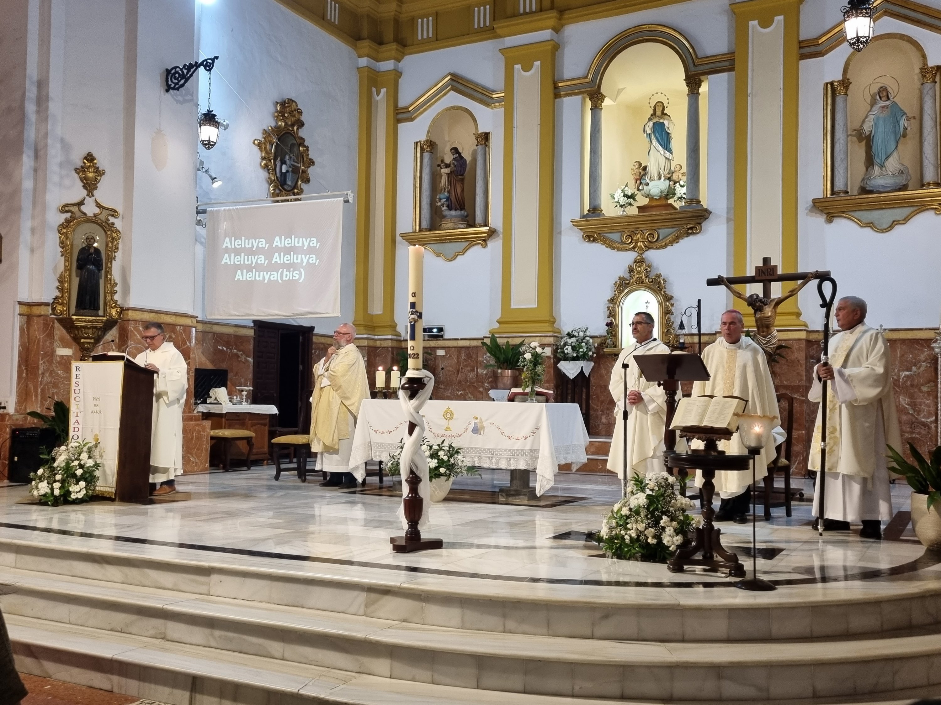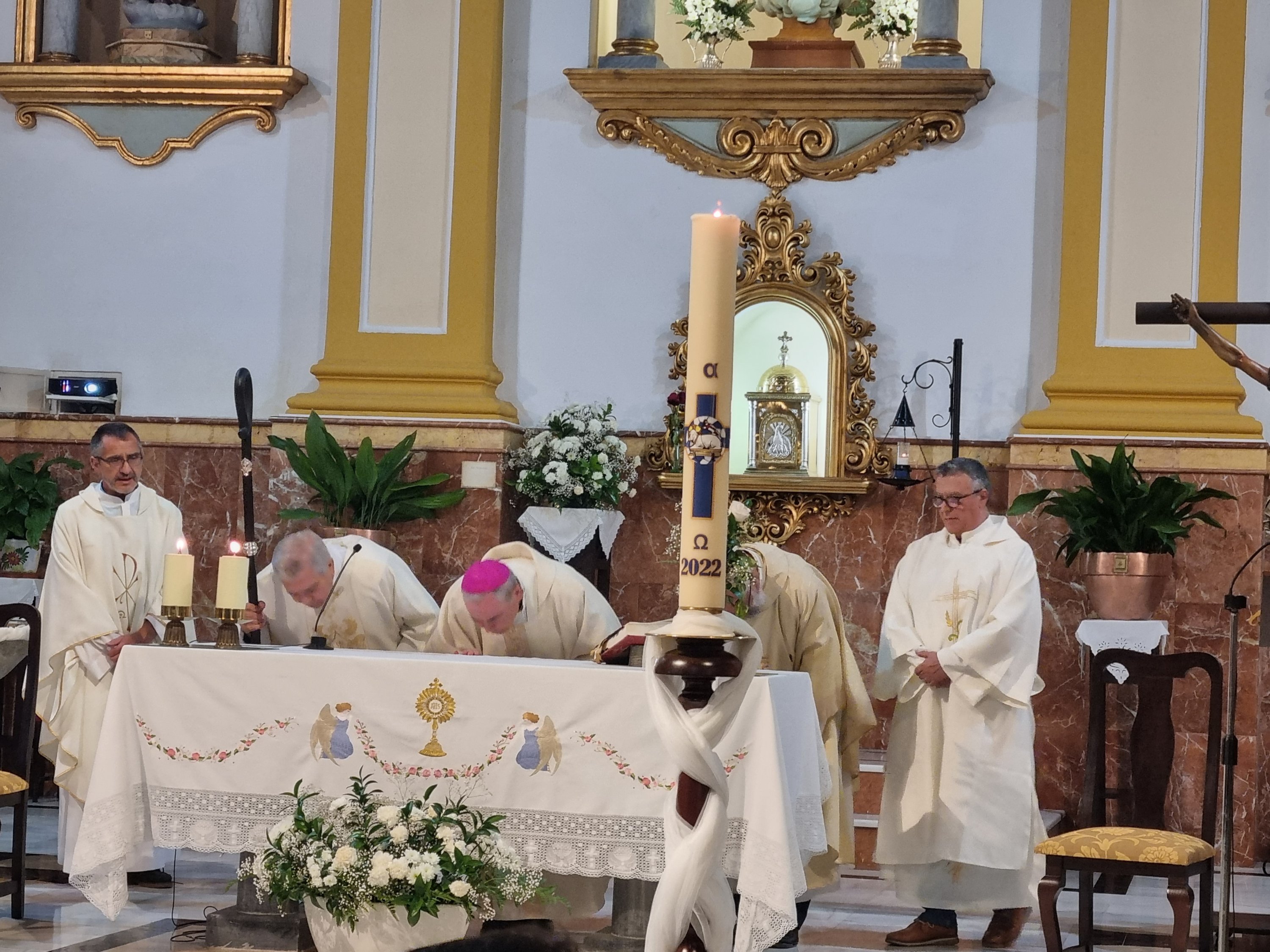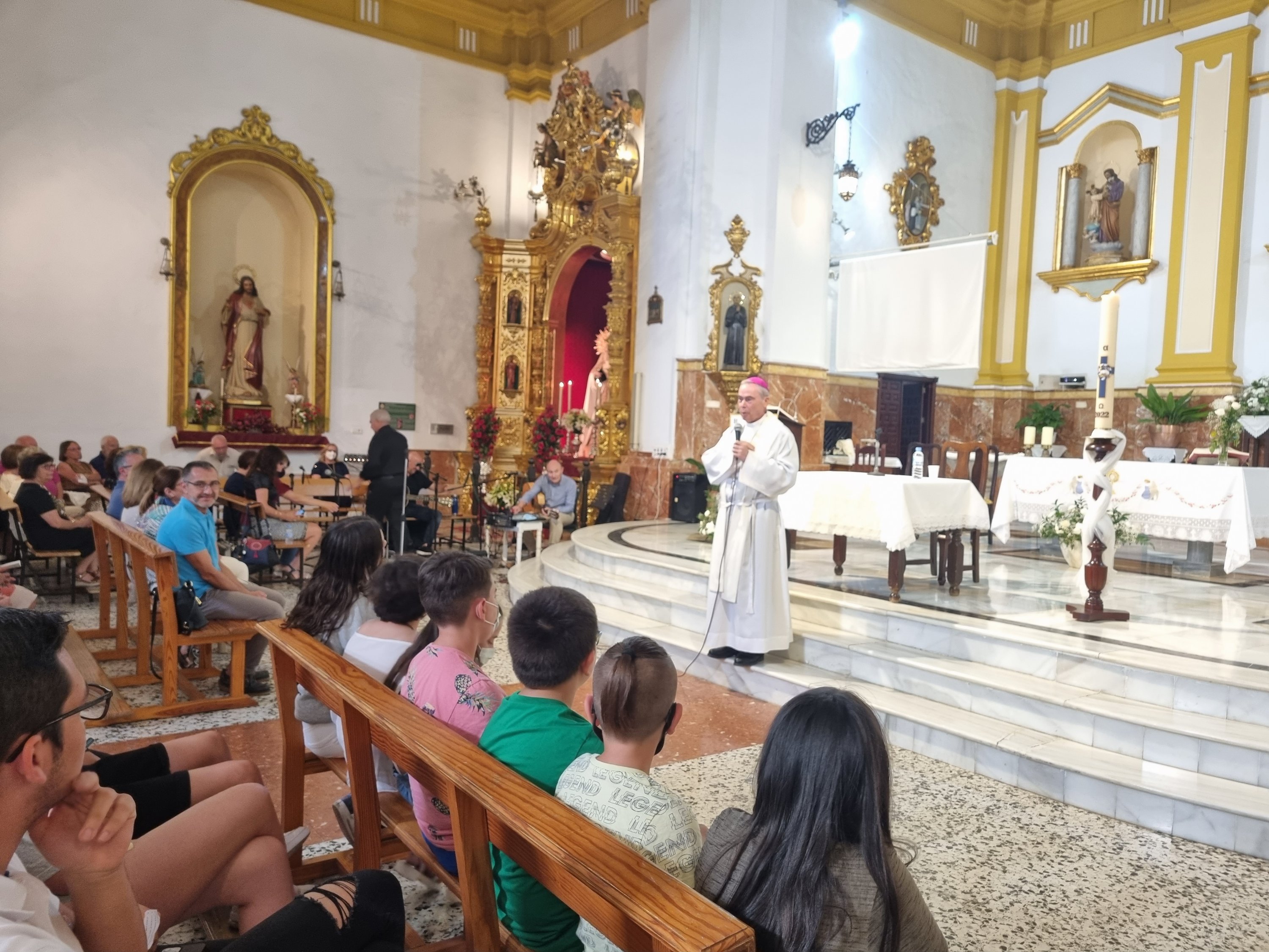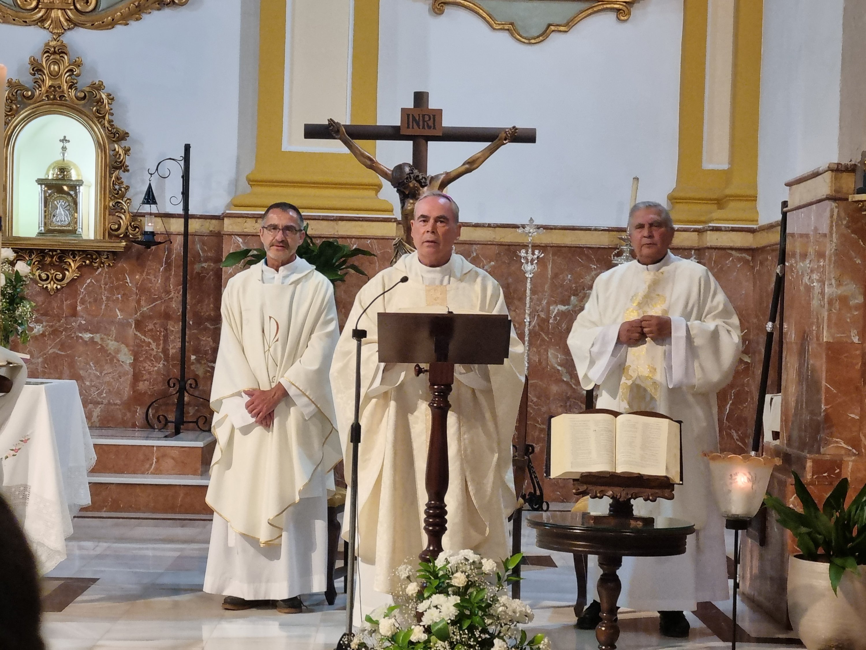 Seguidamente, se celebró el momento culmen de la Visita, la Santa Eucaristía. La misma estuvo presidida por el Sr. Obispo, acompañado por el Arcipreste y párroco de Churriana, D. Antonio Domínguez, nuestro párroco D. Reinaldo Aguilera, junto a D. José Fernández diácono administrador de la S. I. Catedral de Málaga y nuestro diácono D. José Antonio Aguilar.