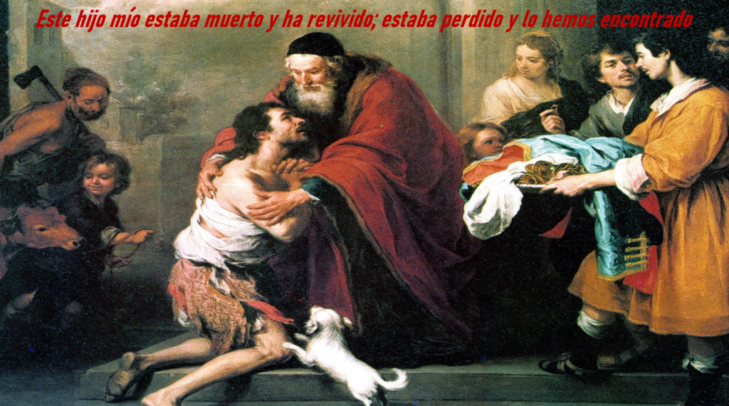 En el evangelio Lucas leemos las tres parábolas del perdón de Dios. La ocasión es que “Y los fariseos y los escribas murmuraban diciendo: Ese acoge a los pecadores y come con ellos”. Las parábolas son transparentes: habrá más alegría en el cielo por un solo pecador que se convierta que la que puede sentir un pastor por la oveja recuperada, o una mujer por la moneda encontrada, o el padre por poder abrazar al hijo que vuelve a casa “cuando todavía estaba lejos, su padre lo vio y se le conmovieron las entrañas; y, echando a correr, se le echó al cuello y lo cubrió de besos”. El protagonista auténtico es el padre. Aunque también es interesante la actitud del hijo joven que se reconoce pecador y se pone en camino a su casa “Padre, he pecado contra el cielo y contra ti”. Y la del hermano mayor, que retrata bien la actitud de los intransigentes “Él se indignó y no quería entrar, pero su padre salió e intentaba persuadirlo”.