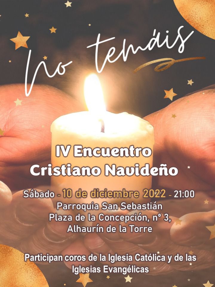 El sábado 10 de diciembre, después de la misa de tarde, sobre las 21:00 tendrá lugar en la Parroquia el IV Encuentro Cristiano Navideño.