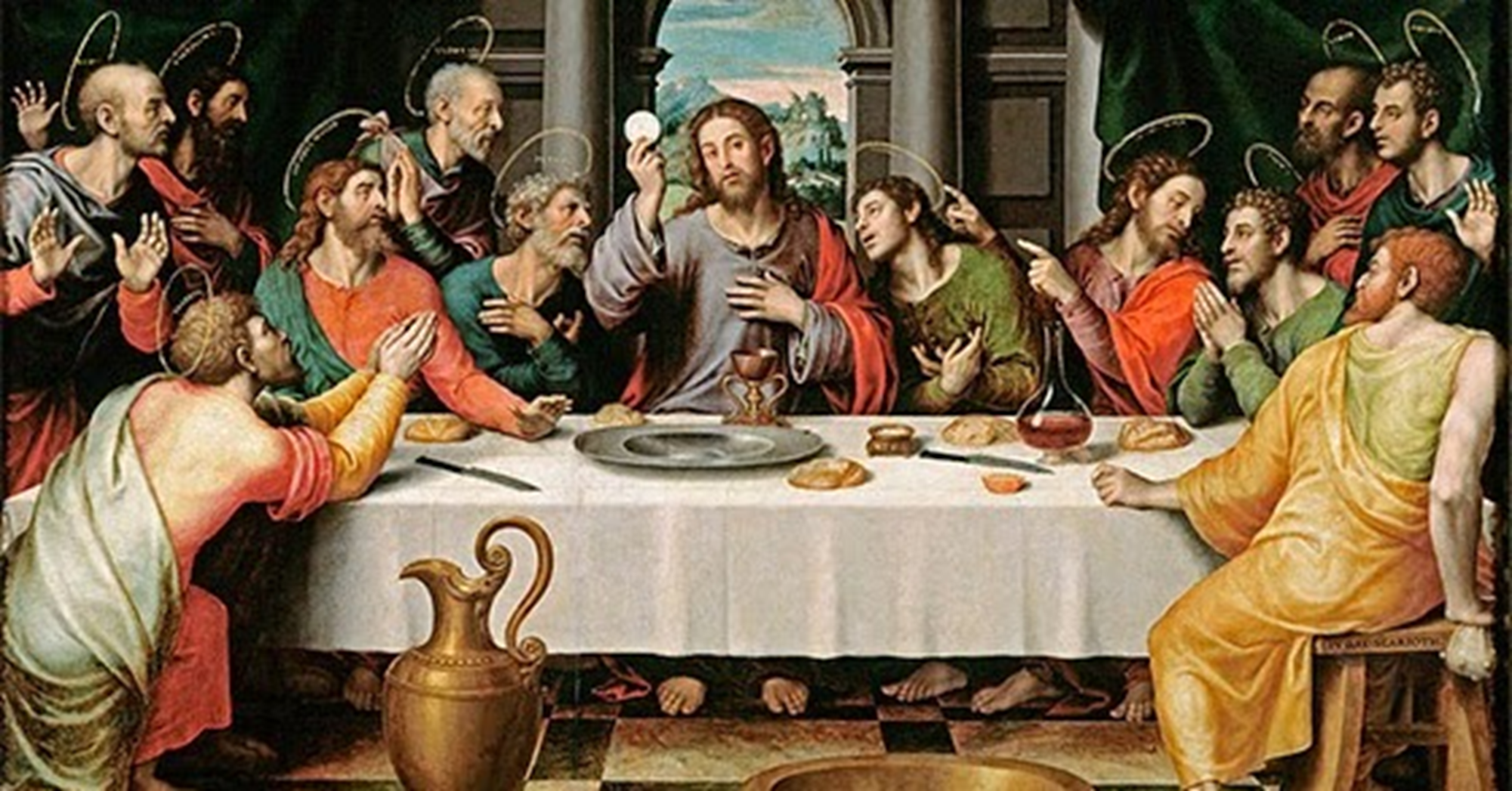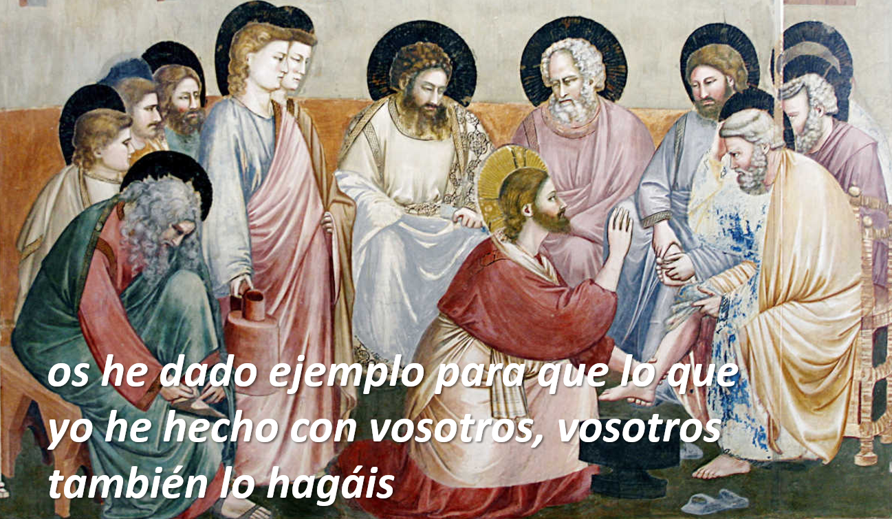 El evangelio de Juan que tanta importancia concede al discurso del Pan de Vida, no cuenta la institución de la Eucaristía. Se limita a relatarnos el gesto de humildad, de amor para los discípulos, y para nosotros, que debemos seguir e imitar su ejemplo “debéis lavaros los pies unos a otros” Jesús se rebaja hasta límites insospechables, haciendo lo que hacen los esclavos, es tal la carga expresiva de este acto, de esta acción que podemos considerarla como su testamento.