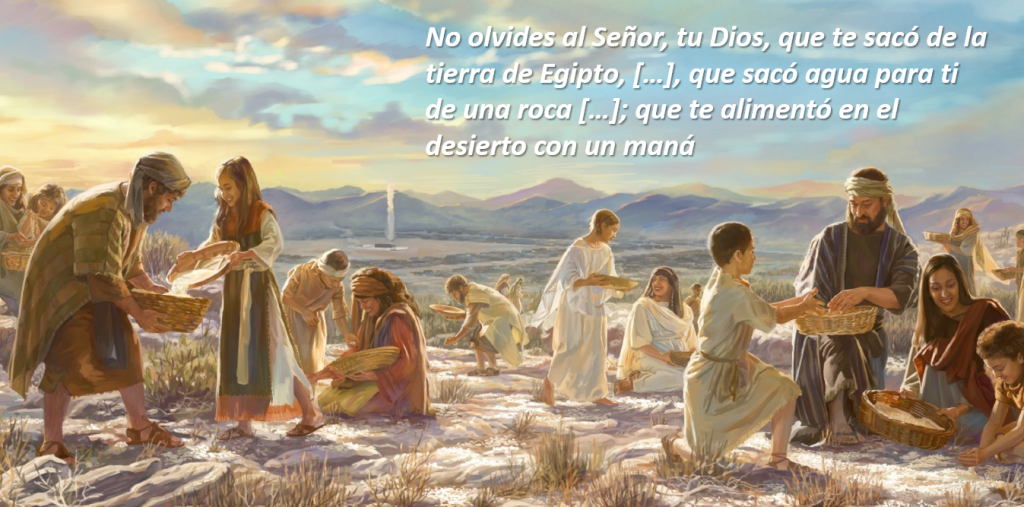 En la lectura del Deuteronomio, Moisés recuerda a su pueblo, cuando va a entrar en la tierra Prometida, los muchos dones que Dios les ha hecho, no solo liberándolos de Egipto, sino ayudándoles en todo su peregrinar por el desierto, sobre todo en cuanto a la comida y la bebida “No olvides al Señor, tu Dios, que te sacó de la tierra de Egipto, […], que sacó agua para ti de una roca […]; que te alimentó en el desierto con un maná” El mana ha quedado en la memoria de Israel como el mejor símbolo de como Dios les favoreció en su viaje y que para nosotros es figura de la Eucaristía, pues así lo compara Juan en el evangelio. Por eso el salmo es un agradecimiento y recuerdo de los favores de Dios a su pueblo “Glorifica al Señor, Jerusalén; […] con ninguna nación obró así”