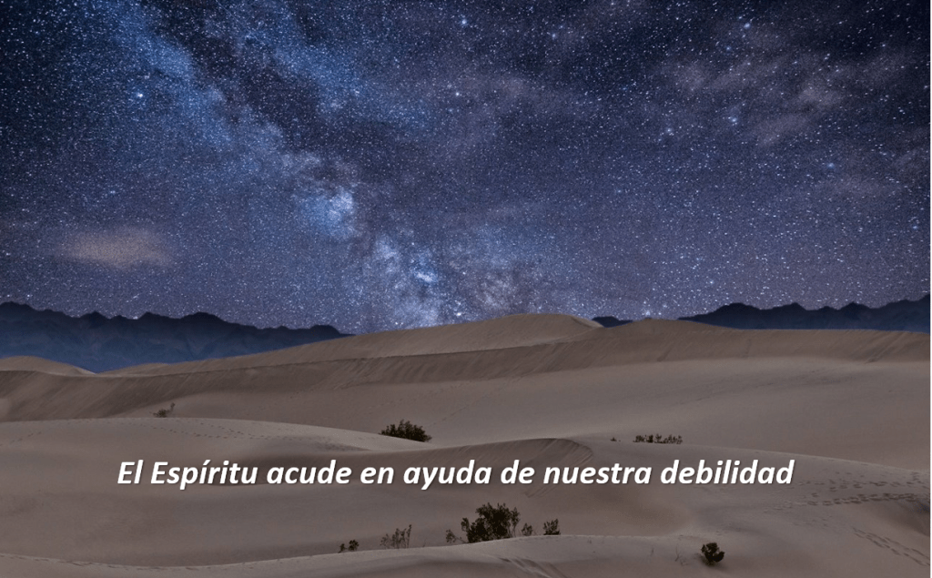 En la carta a los Romanos, Pablo, nos dice como es el Espíritu el que sale en ayuda de nuestra debilidad, enseñándonos a rezar porque no sabemos pedir lo que nos convine, es más es el mismo Espíritu el que ora por nosotros y en nosotros “El Espíritu mismo intercede por nosotros con gemidos inefables”