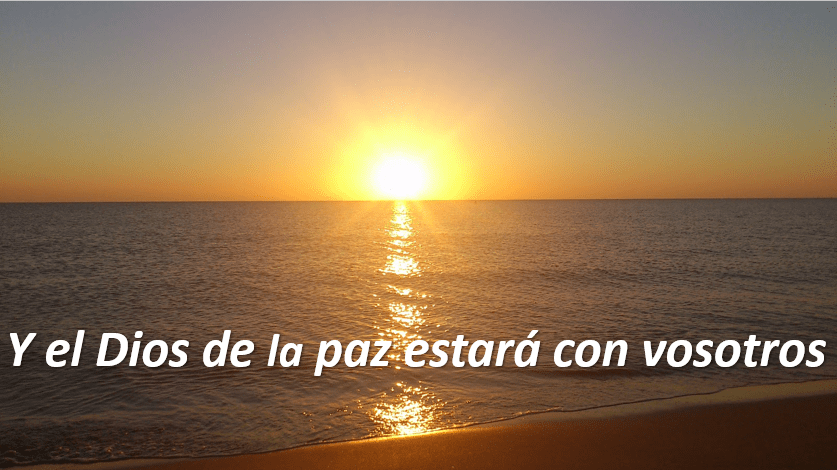 En la carta a los filipenses, Pablo, sigue con las exhortaciones a ser verdaderos cristianos, que el amor sea su seña de identidad. A pesar de las dificultades y turbulencias que puedan tener, no deben nunca perder la paz, el medio para tener esta armonía es tener una profunda fe en Dios en diálogo con él por la oración “Nada os preocupe; sino que, en toda ocasión, en la oración y en la súplica, con acción de gracias, vuestras peticiones sean presentadas a Dios” Todo esto llevará a la paz interior que todos deseamos “Y el Dios de la paz estará con vosotros”