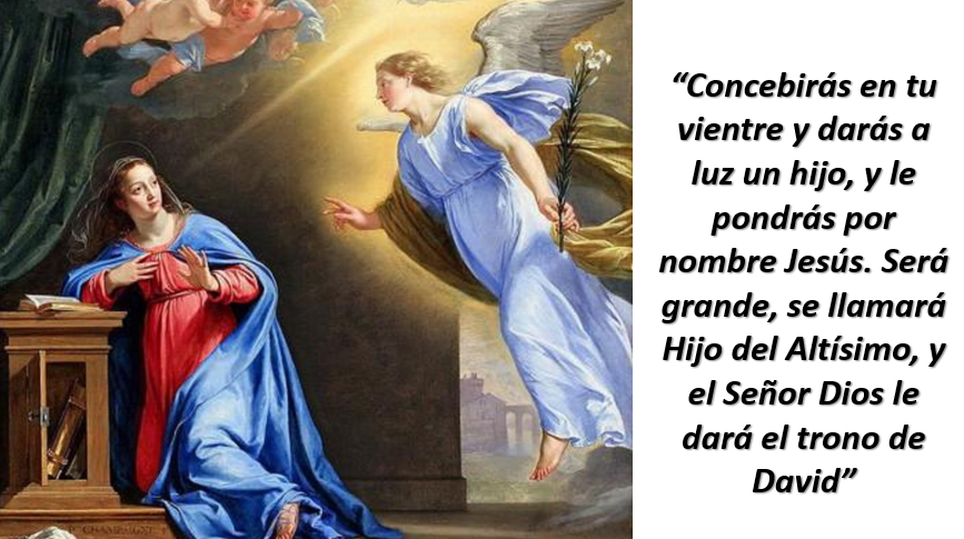 El Evangelio de la Anunciación, lo hemos leído hace poco, en la fiesta de la Inmaculada, pero en aquella fiesta lo hacíamos en clave de anuncio a María, hoy lo hacemos en clave de anuncio del nacimiento del Mesías. En el evangelio, el sí que María, su respuesta afirmativa al plan salvífico de Dios, le lleva concebir en su seno, a dar a luz un hijo y al que pondrá por nombre Jesús, “Concebirás en tu vientre y darás a luz un hijo, y le pondrás por nombre Jesús. Será grande, se llamará Hijo del Altísimo, y el Señor Dios le dará el trono de David” cumpliéndose la promesa davídica, la promesa de salvación. El sí de María representa de algún modo a todos los que a lo largo de la historia han dicho si a los planes de Dios. Es el Espíritu de Dios quien lleva la iniciativa y dirige los hilos de la historia, sirviéndose de personas. María es la que puede ayudarnos a vivir la Navidad con mayor profundidad desde nuestra fe, acogiendo a Dios en nuestra vida con el mimo amor y la misma fe que ella. El ángel Gabriel nos anuncia, como hiciera hace dos mil años, que Dios quiere venir, que quiere nacer en nosotros, desea venir a nuestras vidas, para que podamos transformar el mudo con el anuncio del Evangelio.