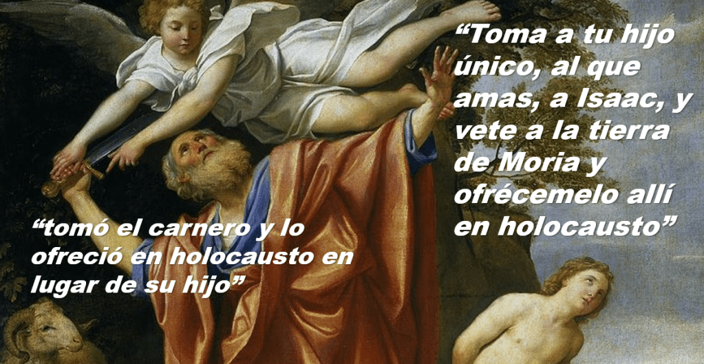 La primera lectura nos recuerda un episodio de la historia de la salvación, la fe sin regateos de Abrahán y su abandono en Dios: el sacrificio de Isaac, el hijo de la promesa, en el que siempre se vio prefigurada la muerte de Jesús, del que espera la vida en plenitud, como dice la antífona del salmo “Caminaré en presencia del Señor en el país de los vivos” La orden de Dios fue una prueba “Dios puso a prueba a Abrahán” el ángel abortó el sacrificio, Isaac fue sustituido por un carnero “tomó el carnero y lo ofreció en holocausto en lugar de su hijo”, este carnero es imagen de Jesús el cordero de Dios sacrificado en la cruz, y por ello, por la fe de Abrahán son bendecidos todos los pueblos, bendición que alcanza su plenitud en la cruz.