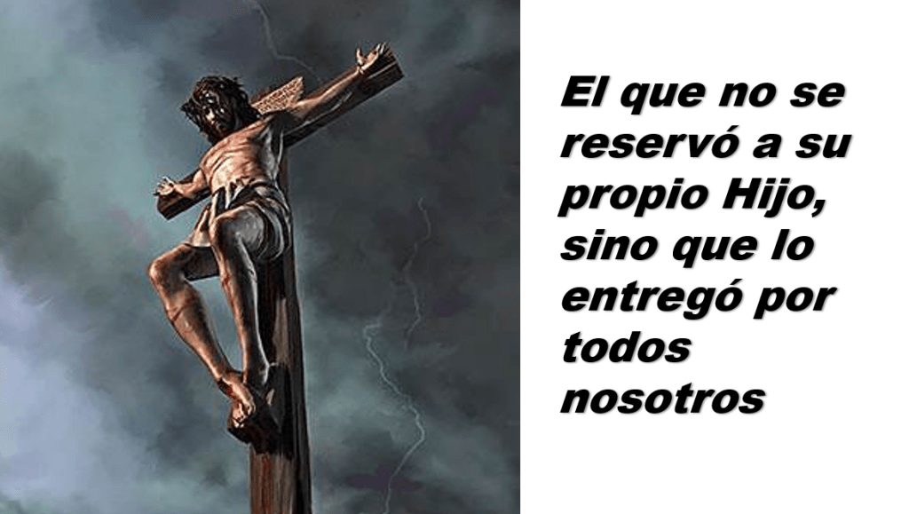 En la segunda lectura, es un himno de Pablo al amor que Dios nos tiene y que se manifiesta en Cristo Jesús, pues a Abrahán le procuró un cordero para sacrificar en lugar de Isaac, en Cristo no perdonó a su propio Hijo, lo entregó a la muerte por nosotros, y a una muerte de cruz. En la primera, Abraham está dispuesto a sacrificar a su único hijo, en la segunda, Dios entrega a su Hijo para demostrarnos que está dispuesto a concedernos todo “Si Dios está con nosotros, ¿ quién estará contra nosotros?”.