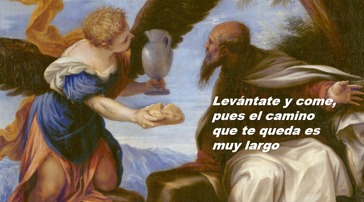 El contexto de la primera lectura, es un contexto de crisis religiosa en el reino del Norte, Israel, el rey Ajab se casó con una princesa fenicia, Jezabel, devota del dios cananeo Baal. El influjo de la reina y permisividad del rey provocó que Dios dejara de tener valor para pueblo, a lo que se opuso el profeta Elías, lo que provoca su intervención y su consecuente persecución y huida hacía el monte Horeb, al monte Sinaí. En su huida y largo viaje, Elías desesperado desea la muerte ¡Ya es demasiado Señor! ¿Toma mi vida, pues no soy mejor que mis padres! La intervención de un ángel del Señor, le proporciona alimento que le proporciona fuerzas para caminar durante cuarenta días y sus noches, hasta el monte donde Dios se reveló a Moisés. El salmo es toda una alabanza a la intervención de Dios “El afligido invocó al Señor, Él lo escuchó y lo salvó de sus angustias” Es una imagen muy viva de que nuestro caminar por la vida, los cuarenta días imagen de nuestro caminar por la vida, camino largo y lleno de suplicas a Dios, y para caminar por la vida nos alimentamos con la eucaristía.