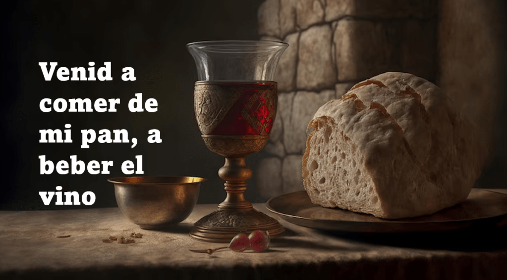 El libro de Proverbios, la Sabiduría nos convoca a un banquete de puertas abiertas, se ofrece el pan y el vino de la prudencia y de saber conducirse en lo cotidiano, manjar que conduce a la vida “Venid a comer de mi pan, a beber el vino”. “Gustad y ved que bueno es el Señor” canta el salmista, que alaba a Dios por su cercanía. S. Pablo, en Efesios, nos dice que el cristiano, inserto en este mundo, no se conforma con lo que el mundo le ofrece, evita lo que le separa de Dios “daos cuenta de lo que el Señor quiere”. En el evangelio, Jesús, se identifica con el pan “Yo soy el pan vivo que ha bajado del cielo”.