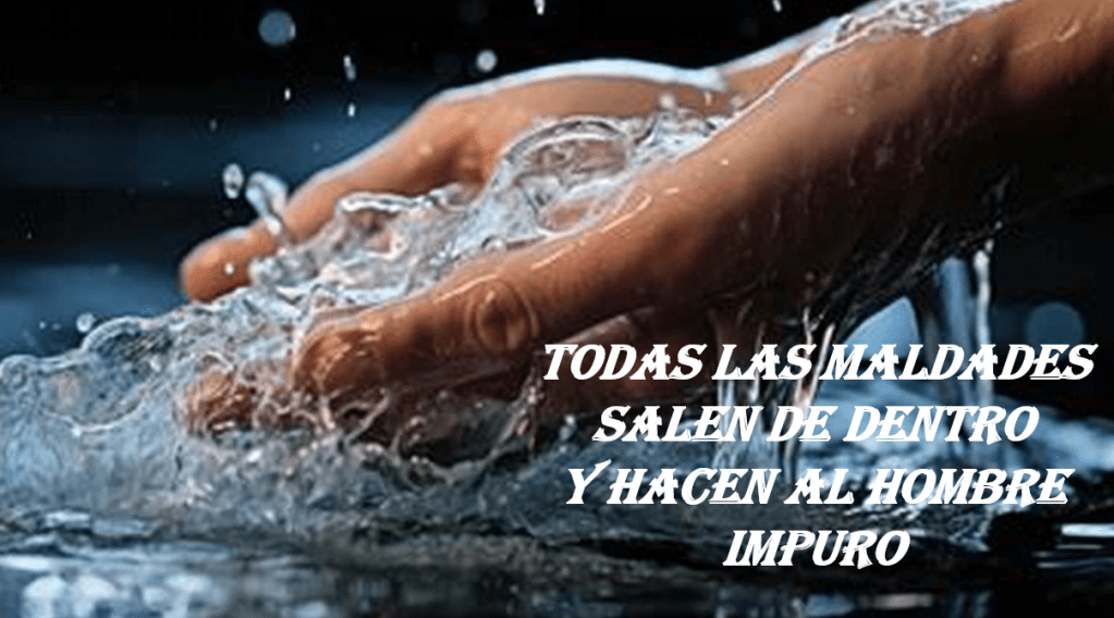 En el evangelio el problema no será comer el pan, sino comer con las manos sucias. Una pregunta malintencionada de los fariseos y de los doctores de la ley, los escribas, ¿Por qué no caminan tus discípulos según las tradiciones de los mayores, y comen el pan con las manos sucias? Provoca la respuesta airada de Jesús aludiendo al profeta Isaías “Este pueblo me honra con los labios, pero su corazón está lejos de mí. El culto que me dan está vacío, porque la doctrina que enseñan son preceptos humanos”. Y da Jesús una enseñanza, nada de lo de fuera hace al hombre impuro ni perverso, es lo que sale de dentro, del corazón del hombre, lo que lo hace impuro al hombre “Todas las maldades salen de dentro y hacen al hombre impuro”.