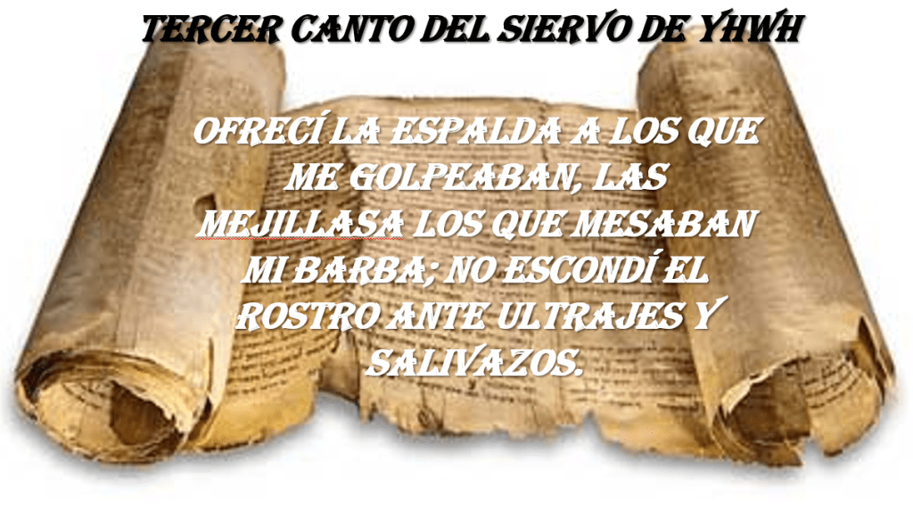 La primera lectura es un fragmento del tercer canto del Siervo de Yhwh, un personaje misterioso, que termina salvando a su pueblo mediante el sufrimiento y la muerte. Identificamos en este poema a Jesús, el mismo dice que el Hijo del Hombre tiene que padecer y el poema anticipa las ofensas, salivazos, golpes, burlas, insultos… Dios, en este fragmento revela a su servidor lo mucho que va a sufrir “me ha abierto el oído”, pero que va a permanecer junto a él “Mi Señor me ayudaba”, “Tengo cerca a mi defensor”, “el Señor me ayuda”. El Siervo está convencido de que el sufrimiento no es un castigo de Dios, sino un paso previo al triunfo. El siervo no se rebela, no se echa atrás, ofrece las espaldas y la mejilla a los golpes, no oculta el rostro a bofetadas y salivazos. Si Pedro hubiera comprendido este texto de Isaías, no se hubiese indignado ante las palabras de Jesús, que son el punto de vista de Dios, Pedro, sin embargo, piensa como los hombres, se deja llevar por sentimientos puramente humanos.