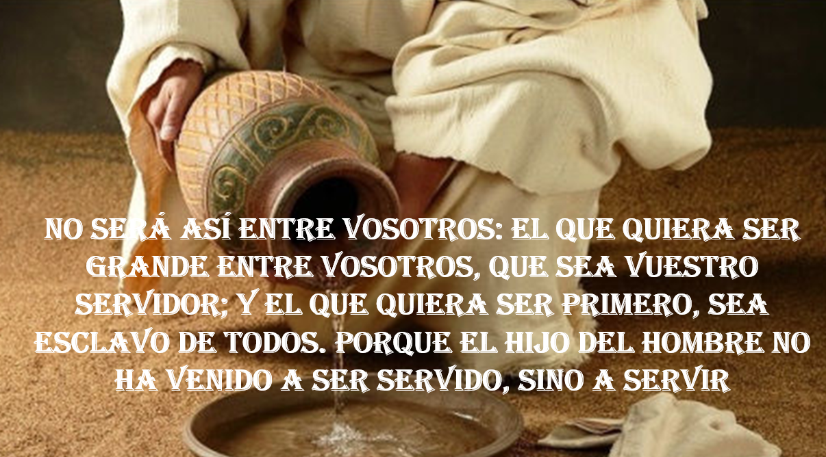 La reacción de los otros apóstoles no se hace esperar, probablemente porque ellos también ambicionan los primeros puestos y Jesús aprovecha para enseñarles como debe ser la relación dentro de la comunidad “Sabéis que los que son reconocidos como jefes de los pueblos los tiranizan, y que los grandes los oprimen. No será así entre vosotros: el que quiera ser grande entre vosotros, que sea vuestro servidor; y el que quiera ser primero, sea esclavo de todos. Porque el Hijo del hombre no ha venido a ser servido, sino a servir y dar su vida en rescate por muchos”. La actitud de los discípulos es muy humana, de simple búsqueda de poder. Por eso Jesús para que no caigan les presentó los dos ejemplos antagónicos que acabamos de leer, primero que no deben imitar a los jefes y deben de imitar a Él, que no ha venido ser servido sino a servir y dar su vida por todos. De ahí la gran enseñanza el que quiera ser grande entre vosotros, que sea vuestro servidor.