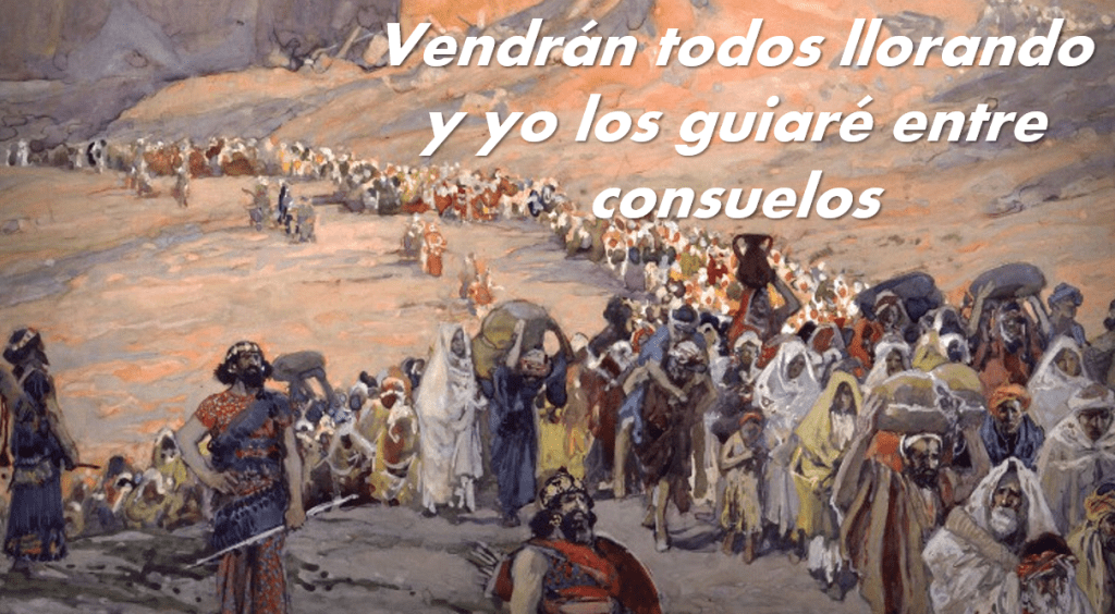 En la primera lectura el profeta Jeremías, uno de los oráculos del Señor del denominado “Libro de la consolación”, pretende consolar al pueblo de Israel, que fue desterrado por los asirios primero y luego por los babilonios, prometiéndole que volverán de todos los confines de la tierra, es un anuncio de esperanza para el pueblo de Israel “¡El Señor ha salvado a su pueblo, ha salvado al resto de Israel!” Volverán incluso aquellos menos capacitados para moverse y desplazarse: cojos, ciegos, preñadas, recién paridas, todos ellos regresarán a Jerusalén. Las penas serán transformadas en consuelos y alegrías como se canta en la antífona del salmo, que recoge el tema del regreso a Jerusalén anunciado por Jeremías, dando nota de la alegría de aquellos que los ven volver, el asombro de los pueblos paganos ante la acción de Dios y el gozo y la alegría de los que se fueron llorando al destierro y vuelven cantando “Al ir, iba llorando, llevando la semilla; al volver, vuelve cantando, trayendo sus gavillas.”
