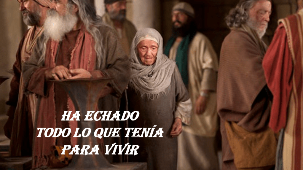 La viuda, no tiene preocupaciones teológicas, ni teóricas, por el estudio de la Torá, solo se preocupa de que hay gente pobre a la que ella puede ayudar con lo poco que tiene “Ha echado todo lo que tenía para vivir”. Debemos recordar en aquellos tiempos ser viuda o huérfano es ser de los más marginados y pobres de aquella sociedad al igual que los enfermos y desvalidos. Lo que llama la atención es la generosidad de la viuda pobre que da lo poco que tiene, y que no busca llamar la atención de sus semejantes, sino la de Dios que mira complacido la piedad que nace del corazón. Jesús deja claro que lo importante no es la cantidad, pues la viuda siendo pobre de solemnidad ha entregado lo poco que tenía, sin más la viuda sigue la lógica del Reino de Dios, mientras los escribas que entregaron lo que les sobraba, siguiendo la lógica de este mundo.