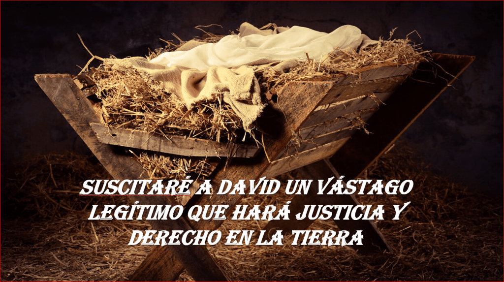 La lectura del profeta Jeremías que fue un gran conocedor de la desgracia que asoló al pueblo, la destrucción de Jerusalén y su Templo, y las deportaciones. Esta desgracia fue uno de los episodios más tristes y amargos para el pueblo judío, pero también nos dice el texto que, a pesar de la crisis, se ponen en marcha unos mecanismos que nos enriquecen. El pueblo judío al carecer del Templo, lugar de los sacrificios y holocaustos animales, se dedican al estudio de la Torá y la oración. Consecuencia de la deportación nace la diáspora, que dará lugar a la sinagoga como casa de estudio de la Tora y oración. La sinagoga será en tiempos de Jesús donde comenzará a difundirse el evangelio. La lectura trae el recuerdo de la promesa hecha a David “suscitaré a David un vástago legítimo que hará justicia y derecho en la tierra”, en la cual Dios le promete habitar para siempre en la dinastía del rey David, dando origen a lo que conocemos como el mesianismo, que va de la mano de la justicia y del derecho, valores de la fe Dios por los que camina, como cantamos en el salmo “haz que camine con lealtad, enséñame, porque tú eres mi Dios y Salvador” desde el origen del pueblo de Israel.
