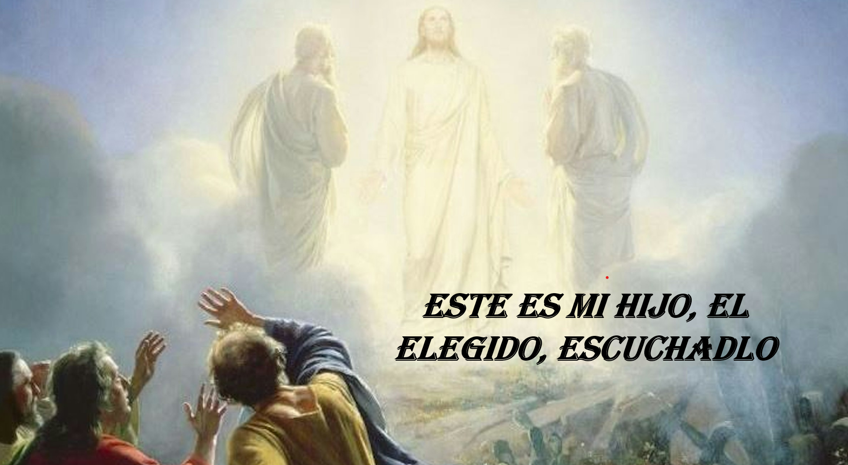 Jesús elige a tres de sus discípulos Pedro, Santiago y Juan, y subieron a un monte alto, según la tradición, el monte Tabor. En el monte se produce una visión, la transformación de las vestiduras de Jesús, una luz que es símbolo de la gloria de Jesús. Aparecen Elías y Moisés. Elías es considerado en el Antiguo Testamento como el precursor del Mesías. Y Moisés es el gran mediador entre Dios y su pueblo, el profeta con el que Dios habla cara a cara. Jesús se encuentra en la línea de los grandes profetas, llevando su obra a plenitud.