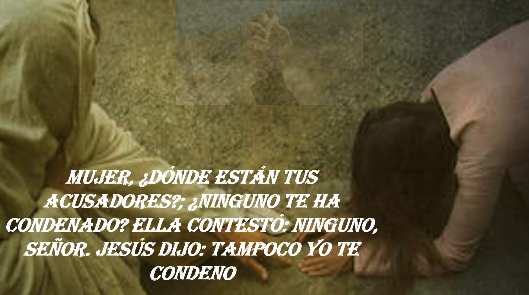 El Evangelio, este domingo según san Juan, no presenta a una mujer condenada a muerte por lapidación; macabro modo de ejecución que aún pervive en la actualidad en algunos países. Los escribas y fariseos, aprovechan este episodio para poner a prueba a Jesús. Quieren cogerlo en una trampa y tener de qué acusarlo. Jesús, da salida a la situación desenmascarando a los falsos piadosos, echándoles en cara su pecado y salvando a la mujer. Ella dejó atrás su vida anterior, su status quo, “Anda, y en adelante no peques más” siguiendo a Jesús en su nueva vida. Jesús dice una sentencia que aún hoy sigue resonando, “Mujer, ¿dónde están tus acusadores?; ¿ninguno te ha condenado? Ella contestó: Ninguno, Señor. Jesús dijo: Tampoco yo te condeno” nadie puede ser juez inmisericorde de otra persona. Jesús nos invita de forma directa a que nos miremos a nosotros mismo antes de juzgar y condenar a otros.