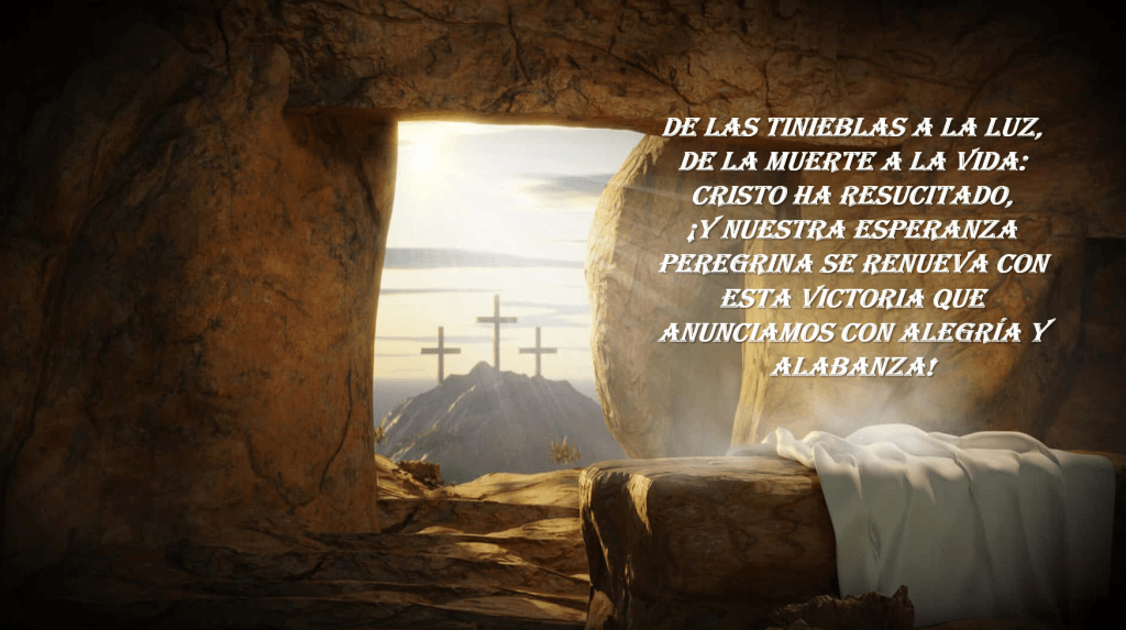 Feliz Pascua de Resurrección: De las tinieblas a la luz, de la muerte a la vida: Cristo ha resucitado, ¡y nuestra esperanza peregrina se renueva con esta victoria que anunciamos con alegría y alabanza!
