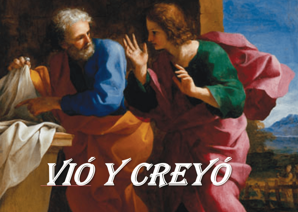 El evangelio de hoy nos narra el amanecer del día más importante de la historia: María Magdalena y luego Pedro y el otro discípulo corren al sepulcro y lo encuentran vacío. La sorpresa inicial da paso a la comprensión: “Vio y creyó” Aún no entendían las Escrituras, que anunciaban que Él debía resucitar de entre los muertos. Este encuentro con el sepulcro vacío es el primer paso de nuestro camino pascual, un camino que nos lleva de la incredulidad a la fe en la victoria de Cristo sobre la muerte.