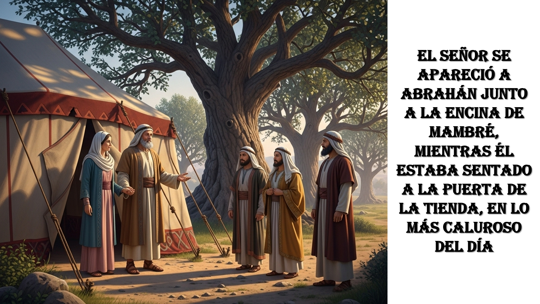 La primera lectura, del libro del Génesis, nos cuenta una teofanía sorprendente, Dios se hace presente en un momento de la vida de Abrahán y Sara “el Señor se apareció a Abrahán junto a la encina de Mambré, mientras él estaba sentado a la puerta de la tienda, en lo más caluroso del día” por medio de la visita de tres peregrinos “Alzó la vista y vio tres hombres frente a él”. Los tres hombres se presentan ante Abrahán en lo más caluroso del día, a medio día, mientras este estaba sentado a la sombra junto a la puerta de la tienda. Abrahán práctica la hospitalidad como hay que hacerlo con todo el que viaja y no tiene techo, ofrece a los invitados lo mejor que tiene, se deshace en detalles, pues les ofrece les ofrece todo un manjar. Practicar la hospitalidad, abrir las puertas de la propia casa a los extraños y extranjeros es toda una bendición. Los visitantes no son una amenaza, ni seres inoportunos, sino que son el medio para que se cumpla la promesa hecha por Dios a Abrahán de tener descendencia, “Cuando yo vuelva a verte, dentro del tiempo de costumbre Sara habrá tenido un hijo” a pesar de ser Sara y él ancianos.