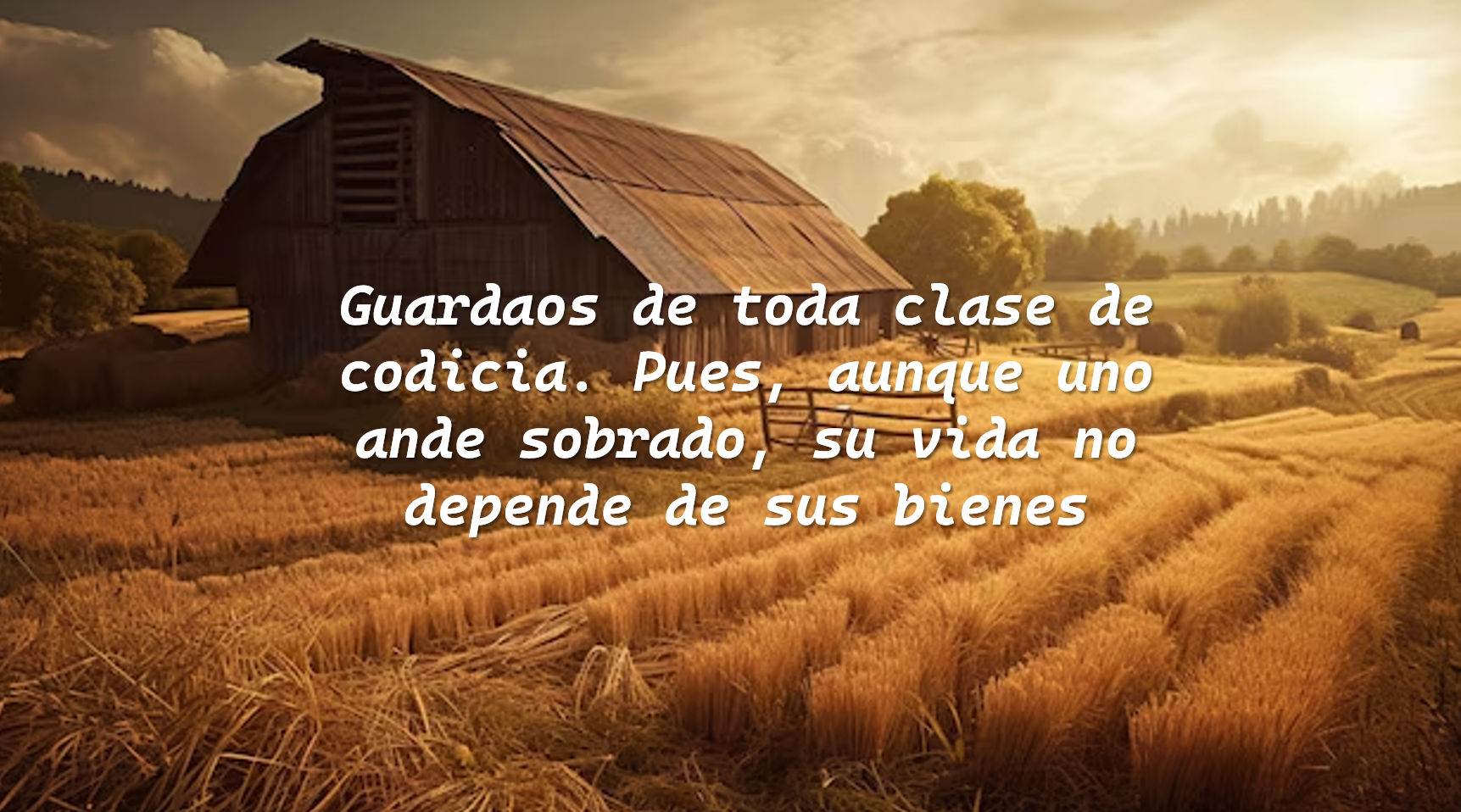 En el evangelio, Lucas, como en otras ocasiones, ante la pregunta de uno de sus oyentes aprovecha la ocasión para desarrollar su enseñanza e instrucción. En esta ocasión es a raíz de uno que le pide que le ayude a resolver una cuestión o problema de herencia, algo muy frecuente entre hermanos de antes y de ahora. Jesús se opone porque no tiene autoridad oficial para dar una sentencia, pero si tiene autoridad moral y desde ella interviene, señalando la causa de este conflicto y en consecuencia interviene para resolverlo. La causa, lo dice bien claro, es la avaricia, pues aparentemente la posesión de bienes parece garantizar un buen porvenir, pero de hecho no aseguran nada, todo lo contrario, hacen que nos olvidemos de Dios, que es realmente el Señor de la vida y el que asegura un futuro feliz. Jesús nos avisa contra la excesiva ambición y deseo de tener “guardaos de toda clase de codicia”, porque nuestra vida “no depende de nuestros bienes”.