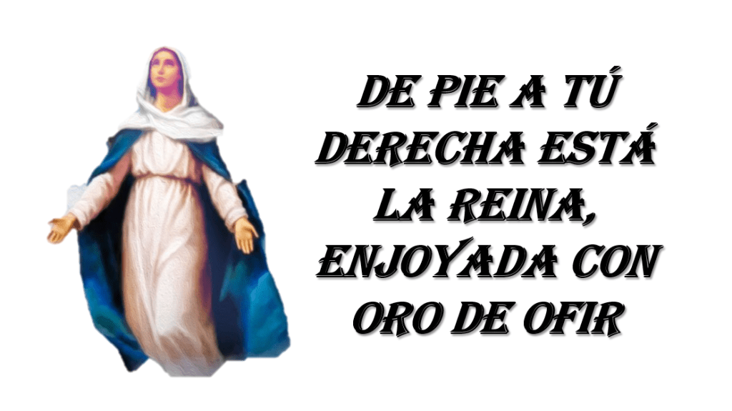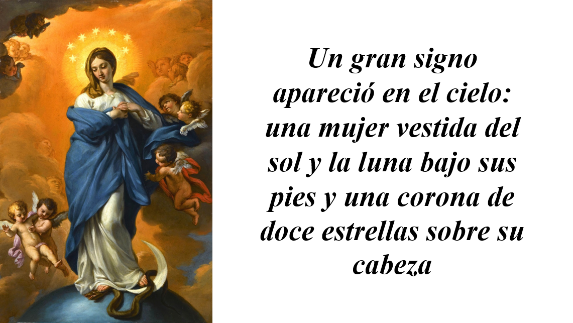 En la primera lectura, del libro del Apocalipsis, observamos símbolos propios de esta advocación mariana: “Un gran signo apareció en el cielo: una mujer vestida del sol y la luna bajo sus pies y una corona de doce estrellas sobre su cabeza”. En el Salmo, resalta la figura de una mujer, presente en el triunfo de Dios, aplicado a la Virgen María, cantamos la antífona “De pie a tú derecha está la reina, enjoyada con oro de Ofir”. La segunda lectura, de la Carta a los Corintios, presenta a Jesucristo como primicia de lo que nos espera “Cristo resucitó de entre los muertos: el primero de todos”, de lo goza en plenitud la Virgen María, como predecesora. El Evangelio de San Lucas, María, nuestra Madre y hermana en la fe entona el Magníficat: “el poderoso ha hecho obras grandes en mi”.