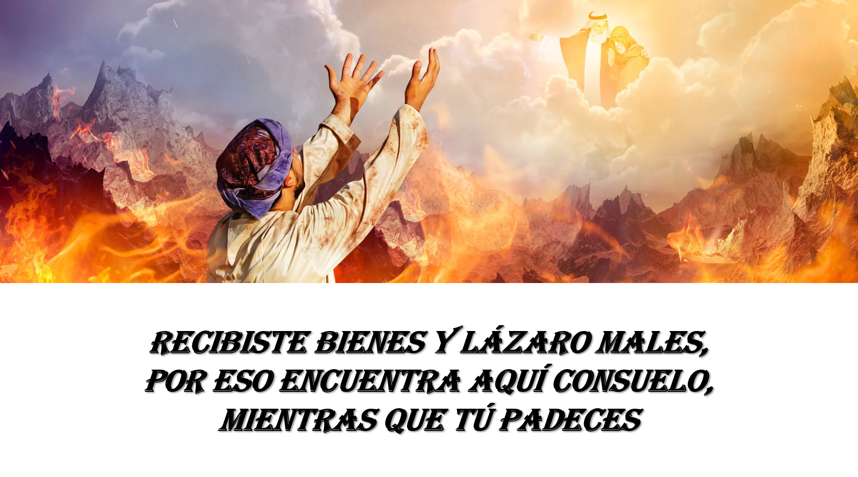El profeta Amós, denuncia la situación de injusticia de los poderosos, clamando contra estos que no entienden lo que es la justicia y la solidaridad, que se enriquecen a costa de los más débiles. “no se conmueven para nada por la ruina de la casa de José” El salmo nos invita a dar gracias porque Dios “hace justicia a los oprimidos, da pan a los hambrientos… endereza a los que ya se doblan… sustenta al huérfano y a la viuda…”. La segunda lectura, de la primera carta de Pablo a Timoteo, da una serie de recomendaciones para la vida del pastor, este debe ser animador y modelo de la comunidad “Hombre de Dios, busca la justicia, la piedad, la fe, el amor, la paciencia, la mansedumbre” Jesús, en el evangelio nos vuelve a insistir en la enseñanza acerca de las riquezas, repite con la parábola del rico y el pobre Lázaro, la situación de injusticia que nos presenta el profeta Amós “recuerda que recibiste tus bienes en tu vida, y Lázaro, a su vez, males: por eso ahora él es aquí consolado, mientras que tú eres atormentado”