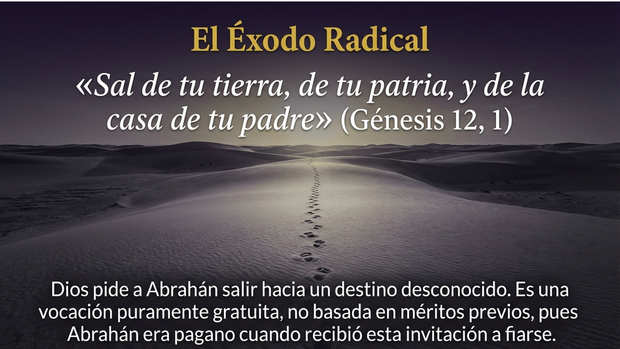 En la primera lectura, escuchamos la llamada que Dios dirige a Abrán, pidiéndole realizar un éxodo radical: salir de su tierra y de su patria hacia un destino desconocido “Sal de tu tierra, de tu patria, y de la casa de tu padre, hacia la tierra que te mostraré” Esta vocación es puramente gratuita y no se basa en méritos previos, pues Abrán era pagano cuando recibió esta invitación a fiarse totalmente de la Palabra del Señor. La respuesta de fe de nuestro padre Abrahán es el modelo de nuestro camino cuaresmal, Abrán abandonó sus bienes, las pequeñas y grandes cosas a las que estaba acostumbrado; abandonó sus raíces, su marco cultural, religión y estilo de vida; abandonó los lasos afectivos que le ataban, sus relaciones económicas y tradicionales. Esto nos recuerda que creer es ponerse en camino aun cuando el cielo parezca oscuro, abandonando nuestras falsas seguridades.
