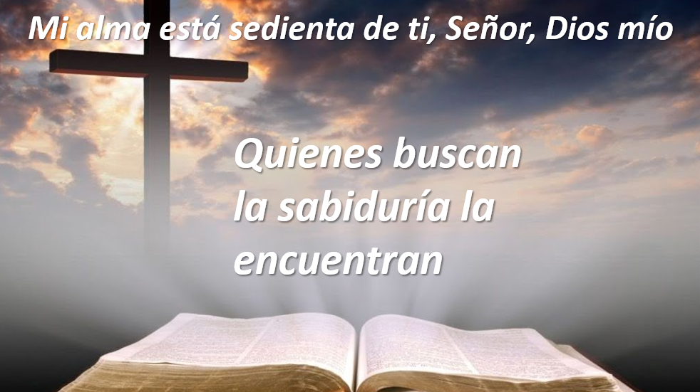 El libro de la Sabiduría, personifica a la sabiduría y la compara con una amiga o una esposa, con una mujer radiante y hermosa a la que el hombre justo ama, desea, y sale a su búsqueda, y la encuentra sentada en su puerta. La lectura nos viene a decir es que Dios se deja hallar por quien lo busca, es más, Él sale a su encuentro como un buen padre con su hijo (el hijo pródigo o padre misericordioso) “ella misma va de un lado a otro buscando a los que son dignos de ella”. El comportamiento de Dios con el hombre es siempre el mismo, se da gratuitamente, es misericordioso y solícito, trata a todos con cariño. Al hombre se le pide disponibilidad, apertura y espera vigilante. Dios se hace el encontradizo con aquel que lo busca con corazón sincero y manifiesta su buena disposición para acoger su Palabra “Se adelanta en manifestarse a los que la desean”. Para el salmista Dios es toda fuente de sabiduría y felicidad “Tu gracia vale más que la vida, te alabarán mis labios”