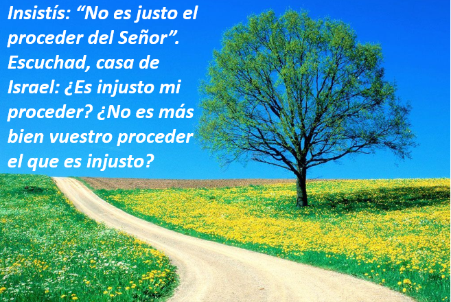La lectura del profeta Ezequiel compara la conducta del justo y del malvado. Si uno es justo y se aparta de la justicia, muere por la maldad que comete “Cuando el inocente se aparta de su inocencia, comete la maldad y muere, muere por la maldad que cometió”, pero si uno es malvado, pero se arrepiente y se convierte de su maldad, salva su vida. Al justo se le pide que persevere en el bien, al malvado que se convierta. El mensaje de Ezequiel es esperanzador, nos invita a confiar en la bondad y perdón de Dios. El mismo salmo recoge una actitud de confianza, apela a la misericordia de Dios, y pide que no se acuerde de los pecados cometidos y que el Señor le muestre sus caminos “Si recapacita y se convierte de los delitos cometidos, ciertamente vivirá y no morirá”.