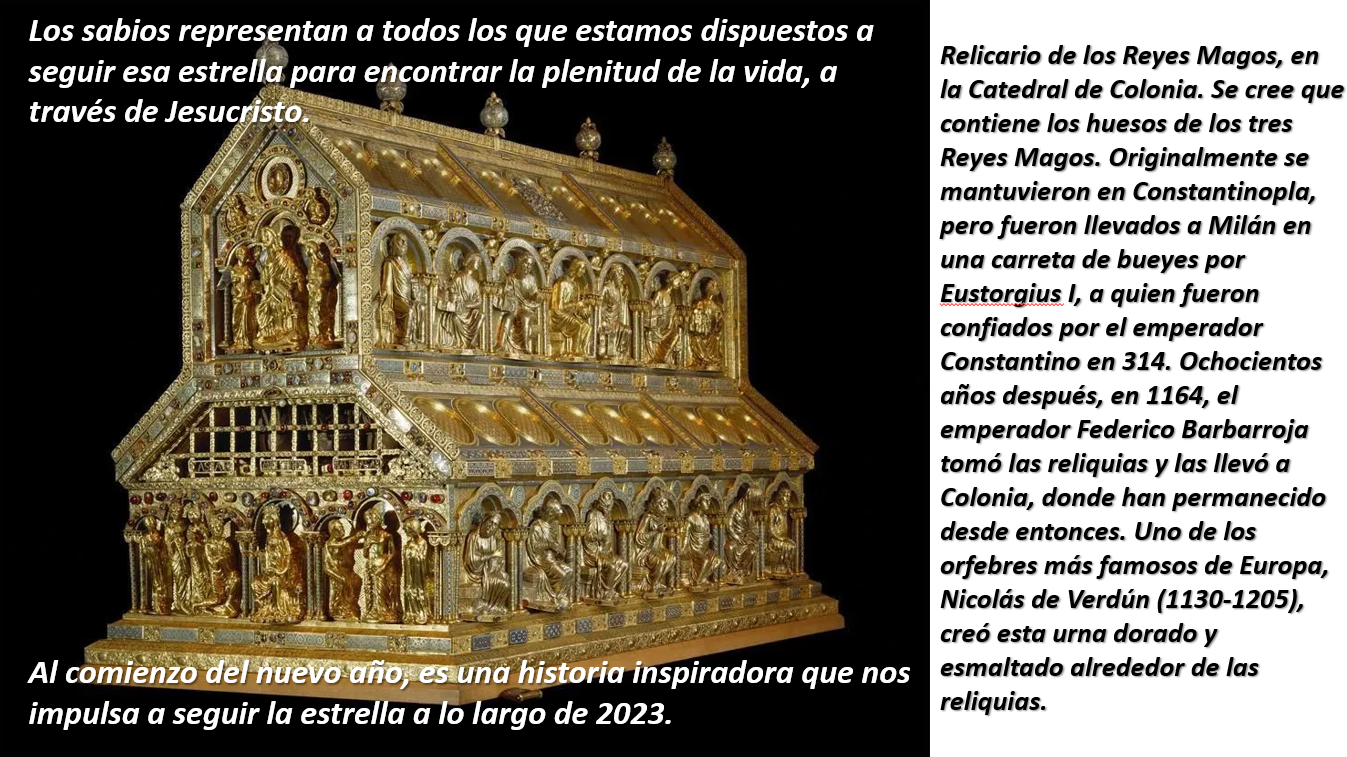 Según la tradición los Magos eran hombres sabios, estudiosos de los astros, escrutadores del cielo, en un contexto cultural que atribuía a las estrellas un significado y un influjo sobre la vida y el quehacer diario. Los Magos representan a los hombre y mujeres en busca de Dios en las diferentes religiones y filosofías, una búsqueda que no acaba nunca. Los Magos nos indican el camino que debemos recorrer en nuestra vida. Ellos buscaban la Luz verdadera, siguiendo una luz ellos buscaban la Luz “Y la estrella que habían visto en oriente los guio hasta que llegó y se paró encima de donde estaba el niño” Siempre hay personas que se sienten interpeladas por el mensaje de la estrella y encuentran al Niño que nos trae la ternura de Dios, son personas que iluminadas por la luz de la estrella encuentran el camino y llegan hasta Él. Una estrella que brilla para todos como nos dice el profeta Isaías “Caminaran los pueblos a tu luz, …”, pero ignorada e indiferente para muchos, todos la pueden ver, pero no todos la siguen, unos incluso la persiguen para eliminarla. Es lo que encontrará Jesús a lo largo de su vida: hostilidad y rechazo por los poderes políticos e indiferencia por los dirigentes religiosos. Solo quienes buscan el reino de Dios y su justicia verán su estrella y su luz.