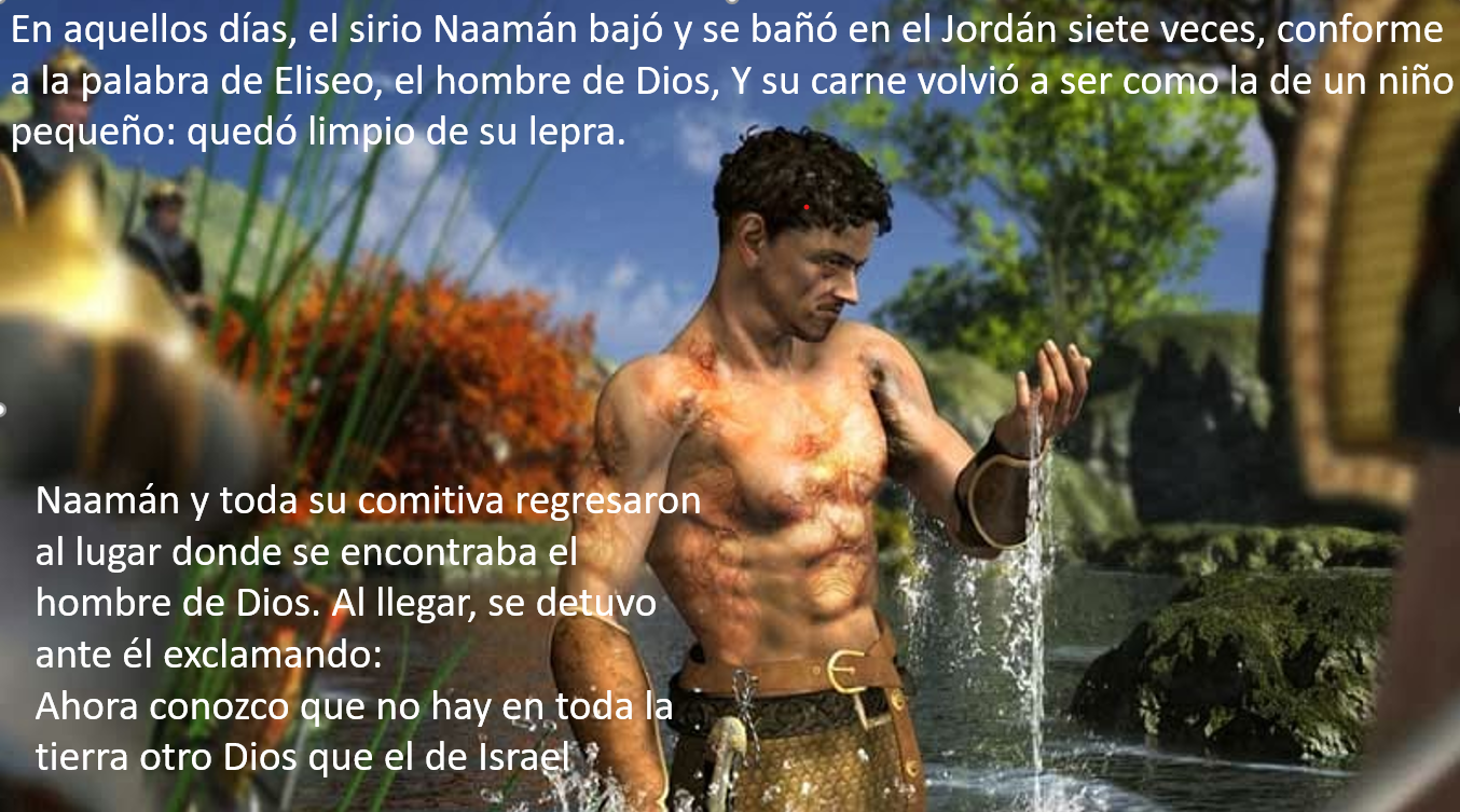 En la lectura del Segundo Libro de los Reyes, pasaje del ciclo de Eliseo, sucesor del profeta Elías, en donde leemos como un general extranjero, Naamán, que padecía de lepra, obedece, aunque al principio le parece casi sin sentido, pues la orden del profeta que lo envía a bañarse siete veces en el Jordán, río insignificante comparado con los grandes ríos Tigris y el Éufrates, de donde procedía Naamán. Cumplió con lo que le mando Eliseo y quedo sano de la lepra, y expresó efusivamente su gratitud hacia el Dios de Eliseo, prometiendo que a partir de ese momento solo ofrecerá sacrificios a ese Dios que es el Único y Verdadero “porque tu servidor no ofrecerá ya holocausto ni sacrificio a otros dioses más que al Señor”. El salmo sigue en esta línea de dar gracias a Dios, porque expresa también la alegría y gratitud, porque la salvación también llega a los extranjeros “Los confines de la tierra han contemplado la salvación de nuestro Dios”