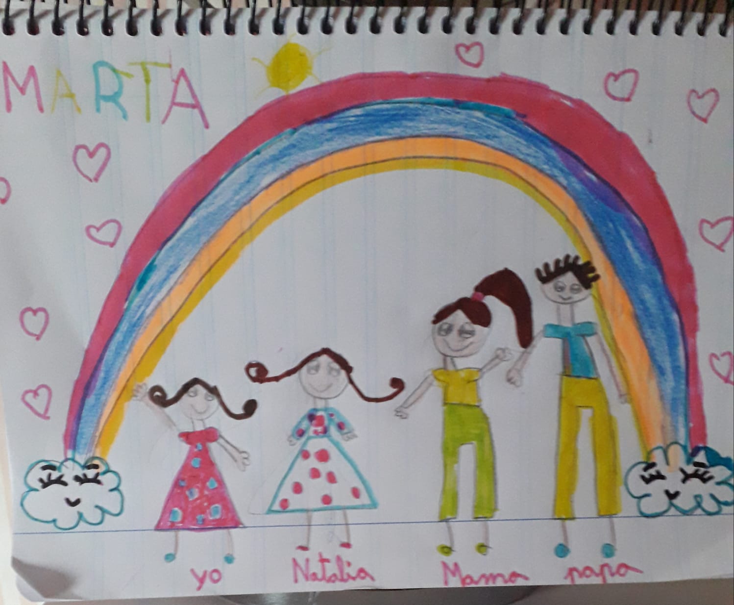 Los niños y niñas de 2 ciclo de catequesis nos envían desde sus casas estas fotos de dibujos que han hecho junto a sus padres y hermanos donde nos presentan a su familia.
