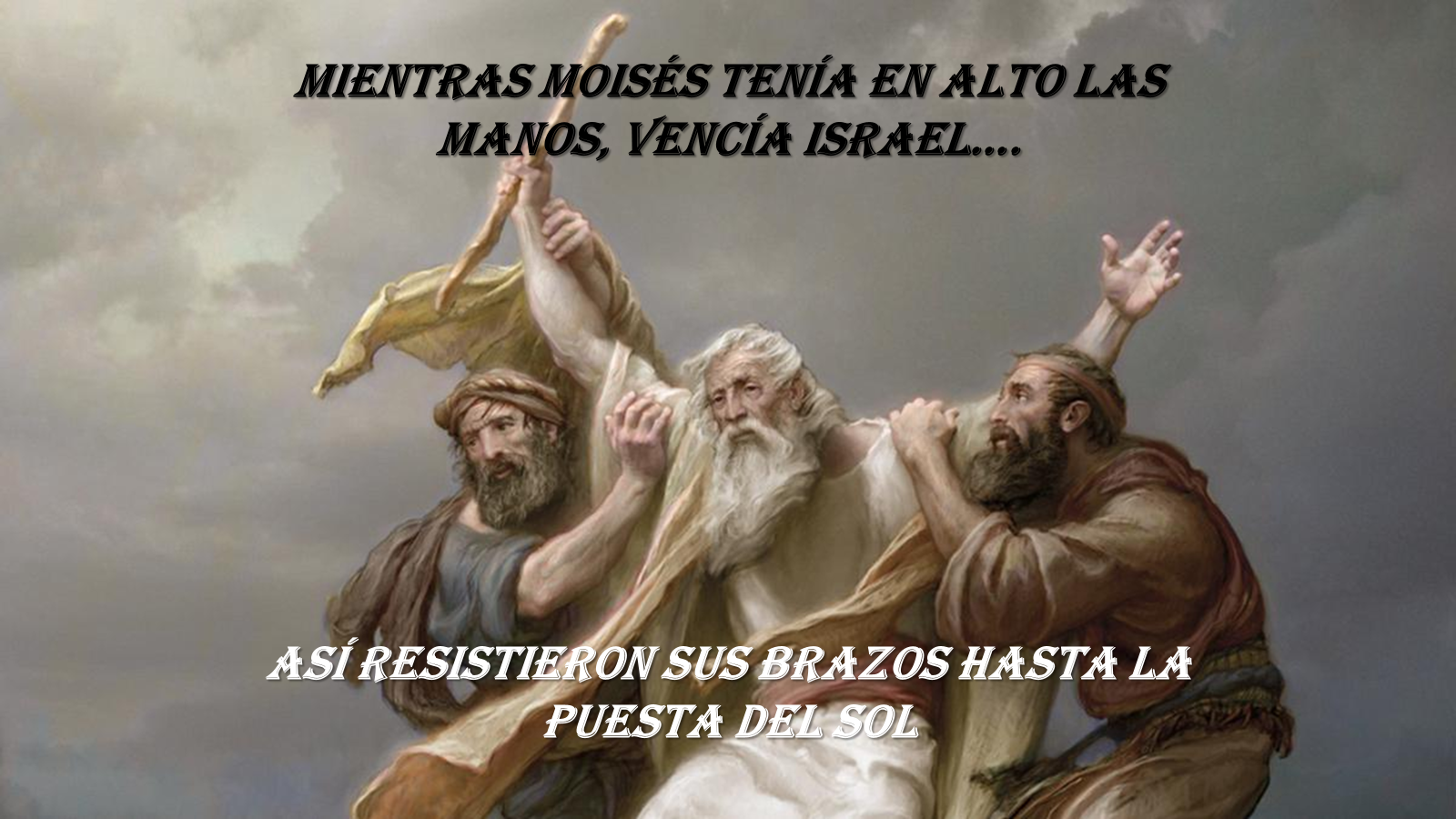 El libro del Éxodo, muestra la eficacia de la oración de Moisés por su pueblo. Israel se tiene que defender de los ataques de Amalec, de los amalecitas, y su victoria depende por completo de la oración de Moisés, el texto nos dice que mientras tenía el alto la mano vencía Israel, en caso contrario lo hacía Amalec. Así se manifiesta la eficacia de la oración, la necesidad de una oración perseverante e insistente. Los israelitas encuentran el medio para hacer posible una oración perseverante por parte de Moisés, el cual se puso en alto en una colina para rezar a Dios, le sentaron e hicieron que Jur y Aarón les sostuvieran los brazos en alto, para mantener a Moisés en actitud de súplica “Así resistieron en alto sus brazos hasta la puesta del sol. Josué derrotó a Amalec y a su tropa”
