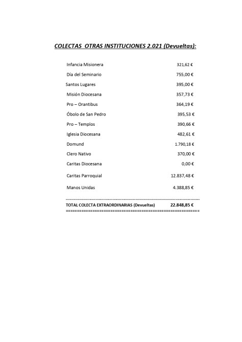 | Total Colectas Extraordinarias: | 22.576,58 € |